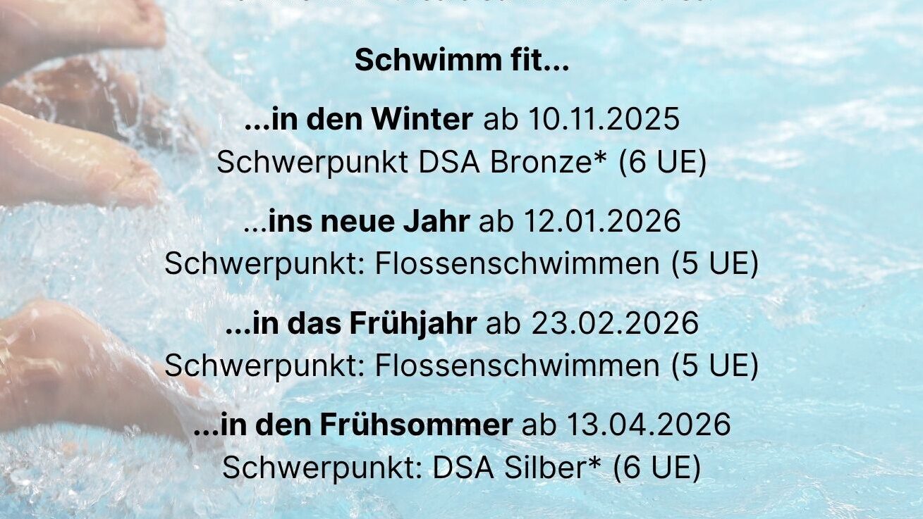 Da die Teilnehmeranzahl begrenzt ist, melde dich schnell für einen Kurs an: schwimmfit(at)wasserwacht-hoesbach.de.